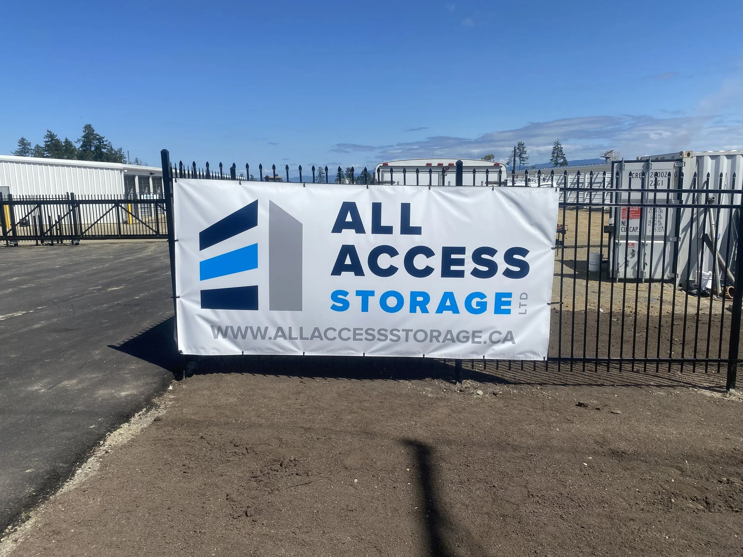 Printed banners up to 62” tall and 100 feet long. These come with grommets every 2 feet and are printed on one side. These are the basic banners everyone uses for temporary events.