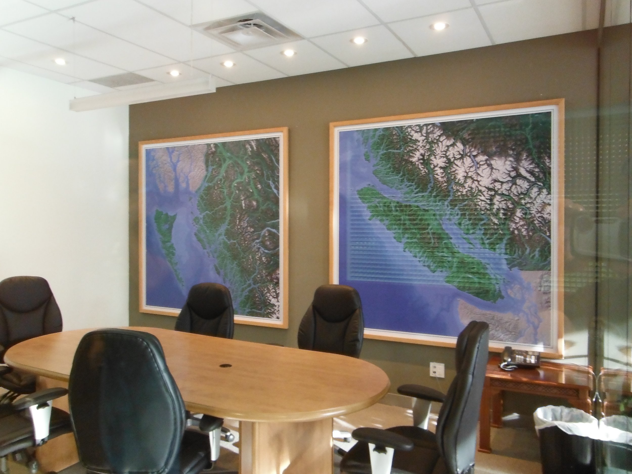 You can have your choice of frame style, either a finished wood frame or an anodized aluminum frame. You can also have these built in any size you wish. The one thing that is a requirement for installing them in your boardroom is that the wall surface is sufficiently strong enough to carry the weight of these panels as they are relatively heavy.