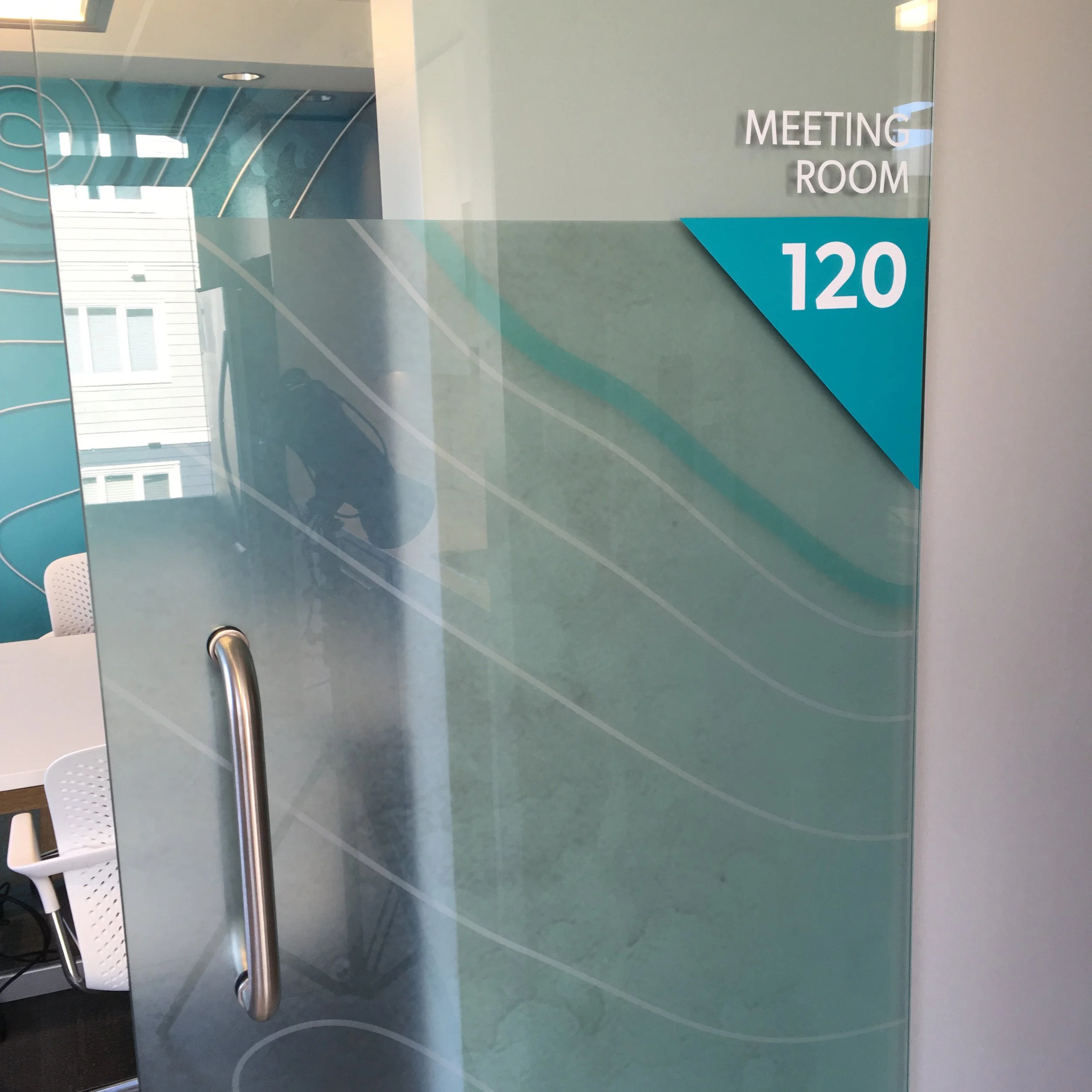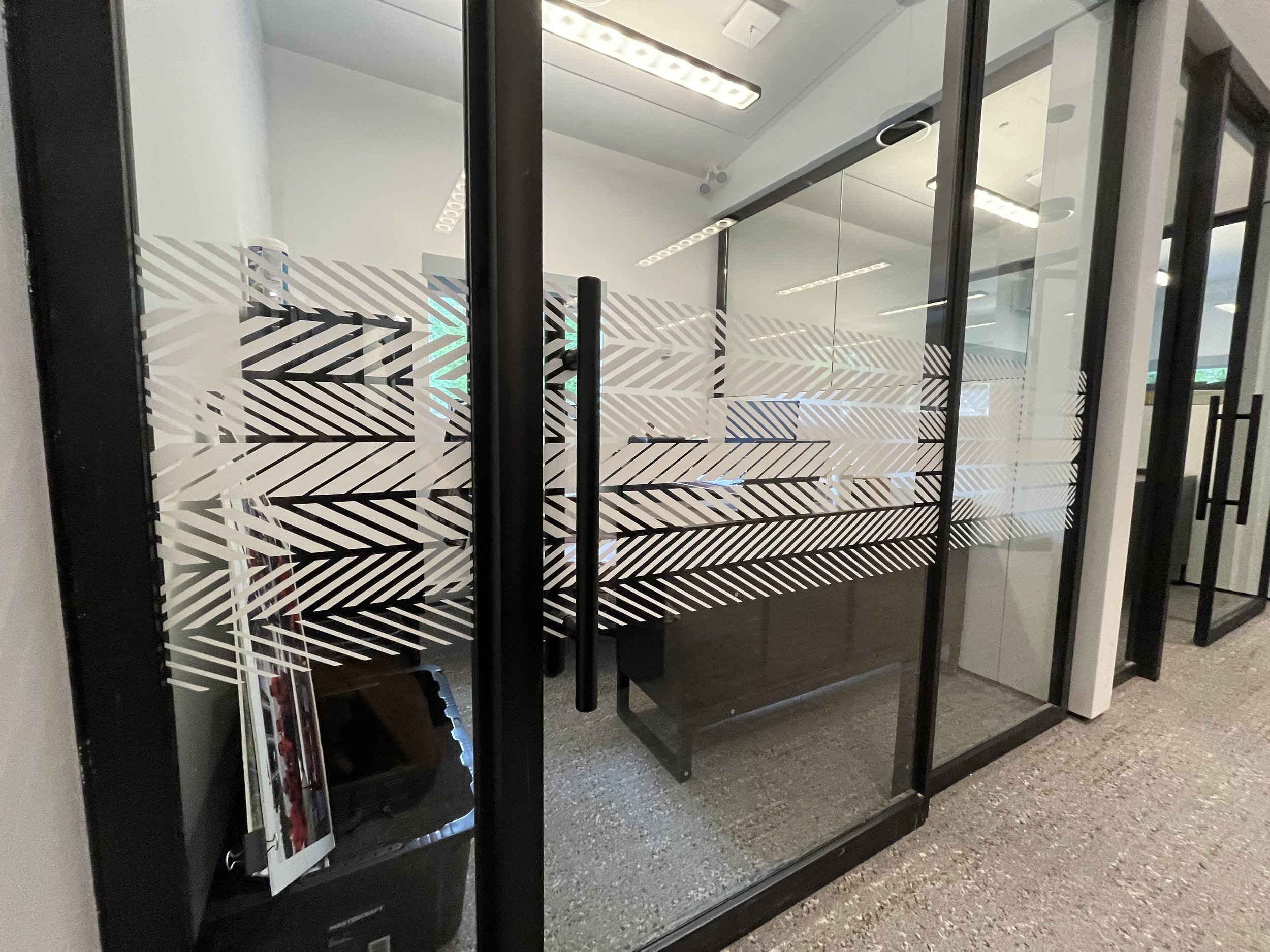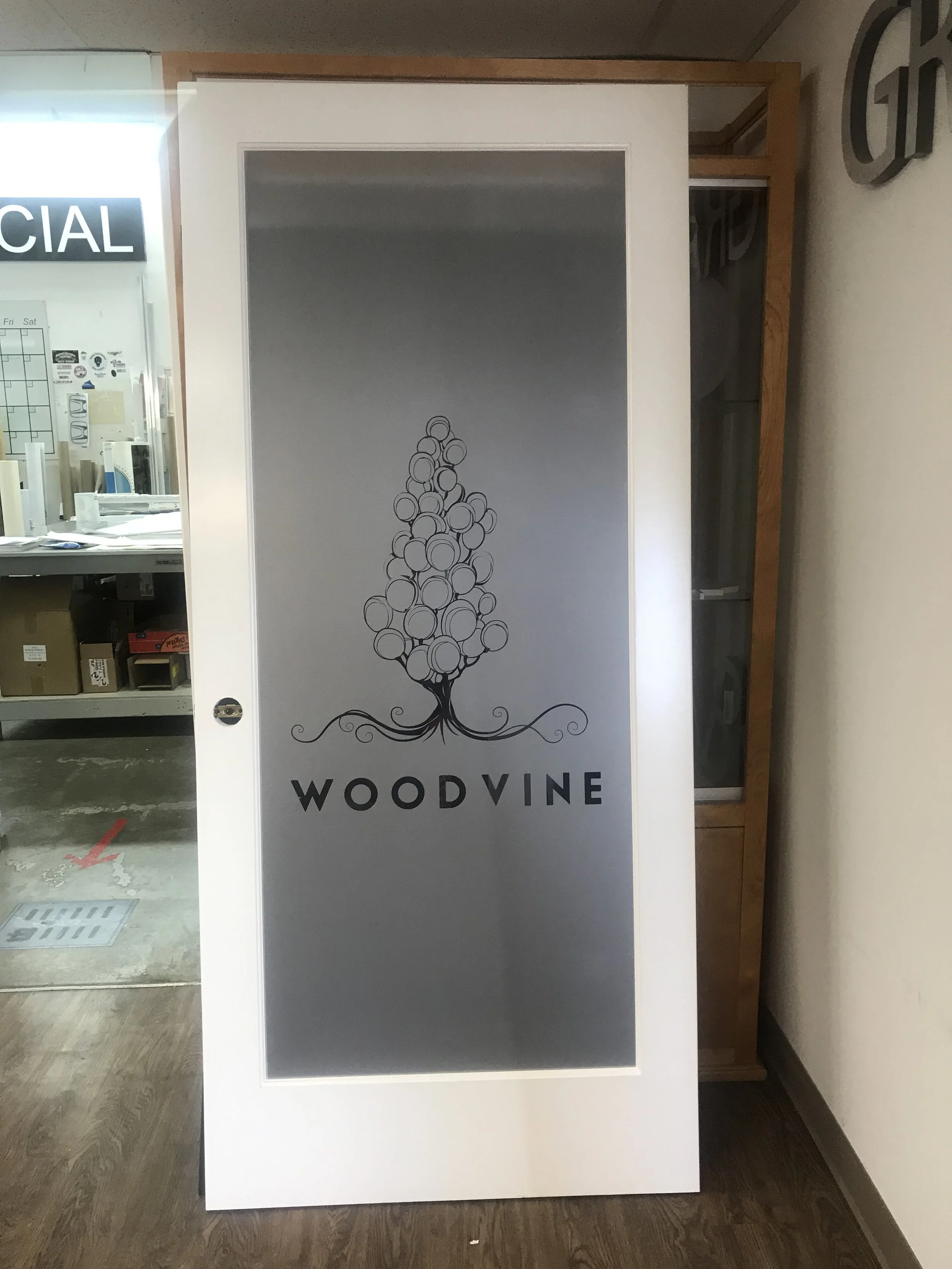 There are multiple styles of window vinyl that give glass the appearance of etching, or sandblasting or a frost appearance; each with it’s own look and price. We can help you choose the option that suites your needs.
