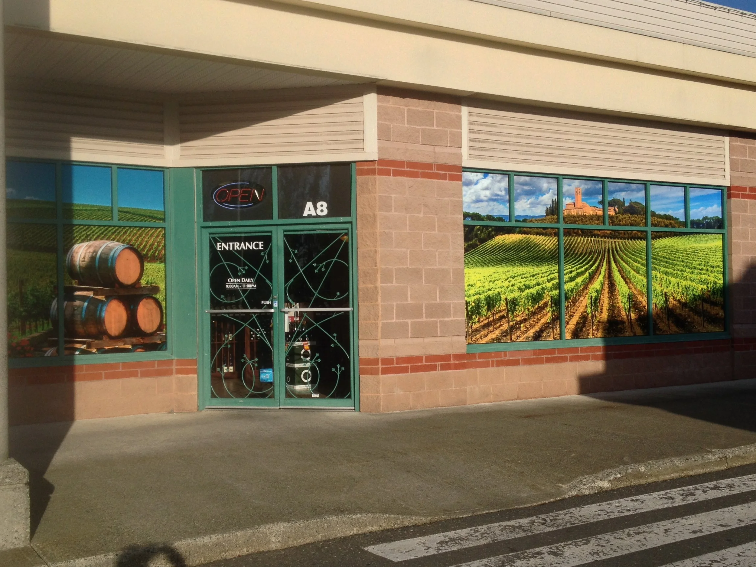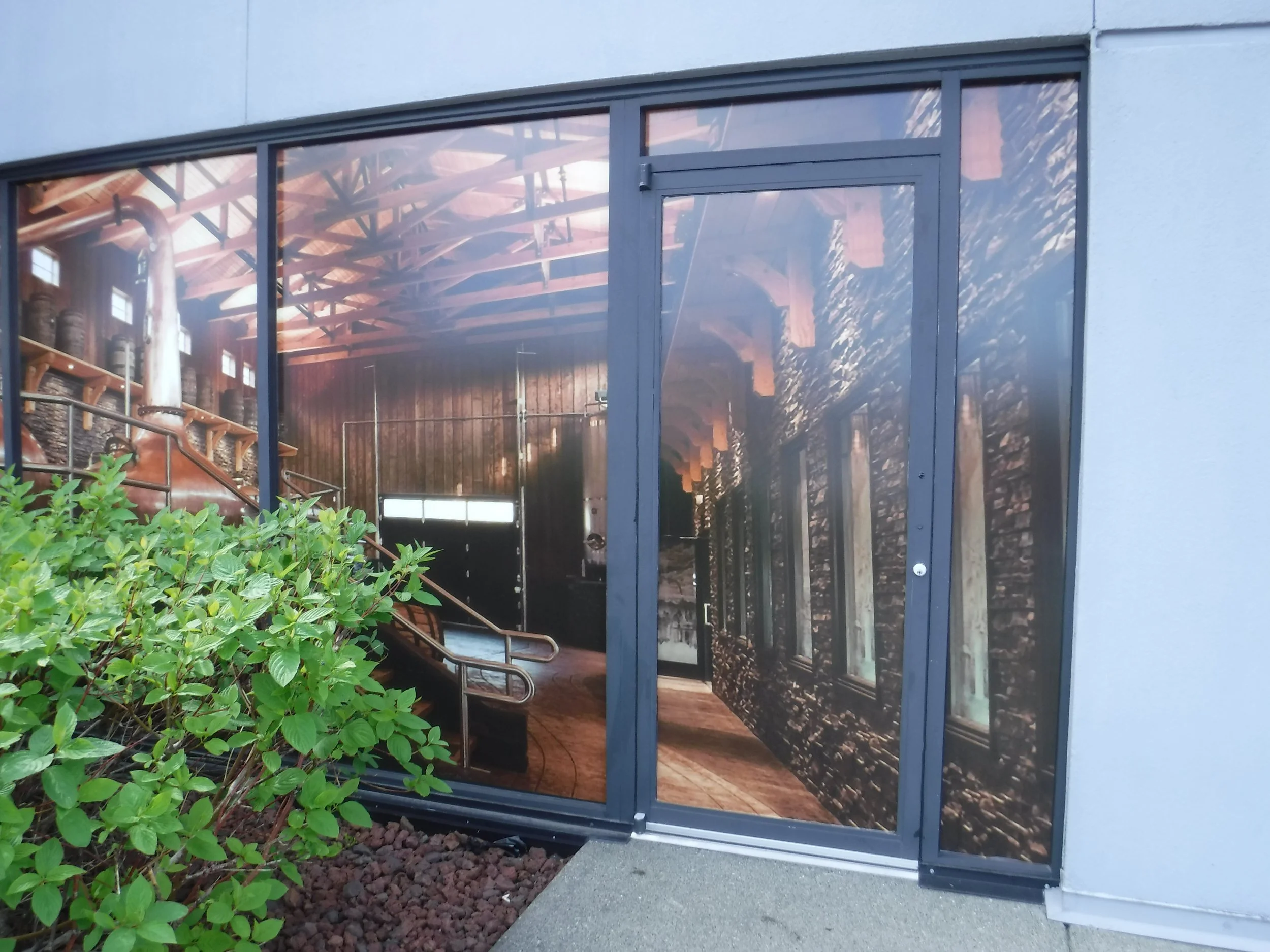 Printed window graphics add amazing punch to business frontages that otherwise do not get used effectively. Window graphics add the eye appeal that gets customers looking at your business. Often, you can add window graphics for advertising or simply add large imagery, like shown below, to capture the attention without infringing on most bylaws that prohibit large scale advertising.